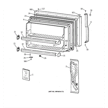 Parts for Ge TBX18JIBRRAA: 01 - Freezer Door Parts