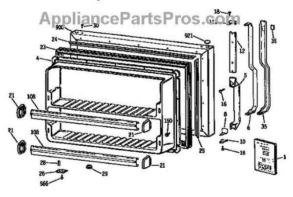 Parts for Ge TBX18JISJRWH: Freezer Door Parts