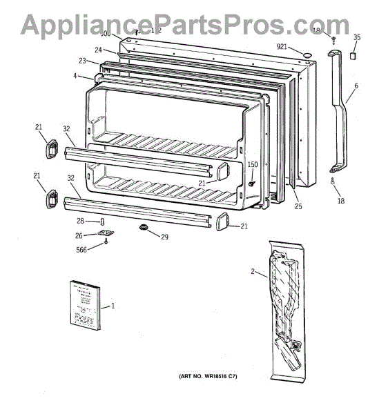 Parts for Ge TBX18SABKLWW: 01 - Freezer Door Parts