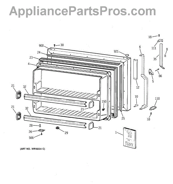 Parts for Ge TBX18ZAXCRAA: 01 - Freezer Door Parts