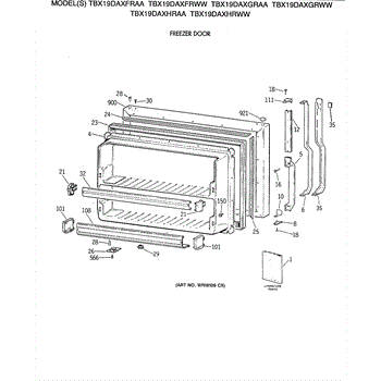 Parts for Ge TBX19DAXFRAA: 01 - Freezer Door Parts