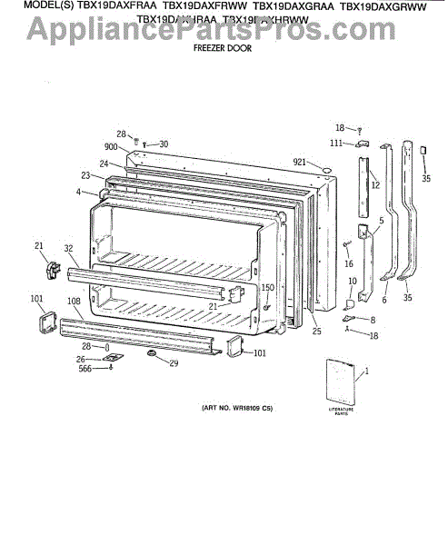 Parts for Ge TBX19DAXFRWW: 01 - Freezer Door Parts