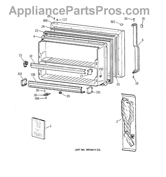 Parts for Ge TBX19FIBRRAA: 01 - Freezer Door Parts