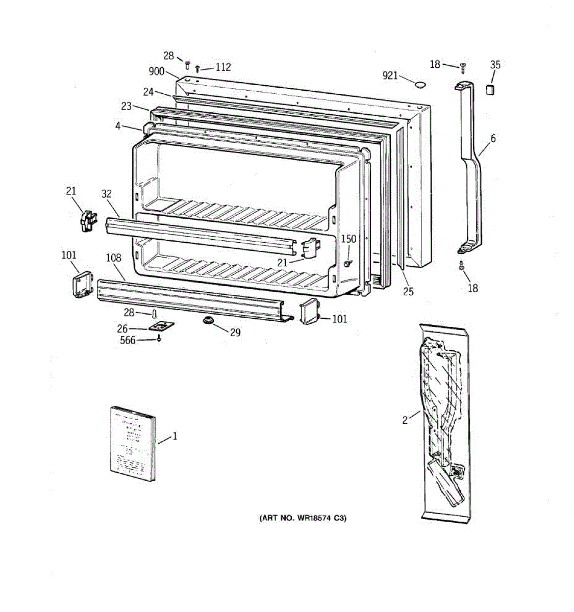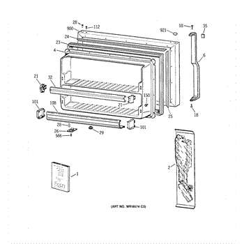 Parts for Ge TBX19FIBRRWW: 01 - Freezer Door Parts