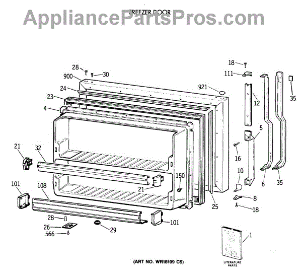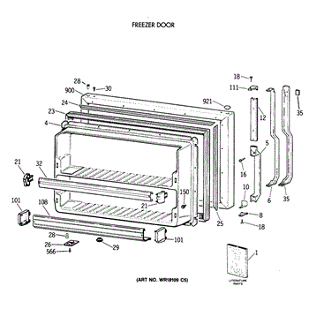 Parts for Ge TBX19JAXERWW: 01 - Freezer Door Parts