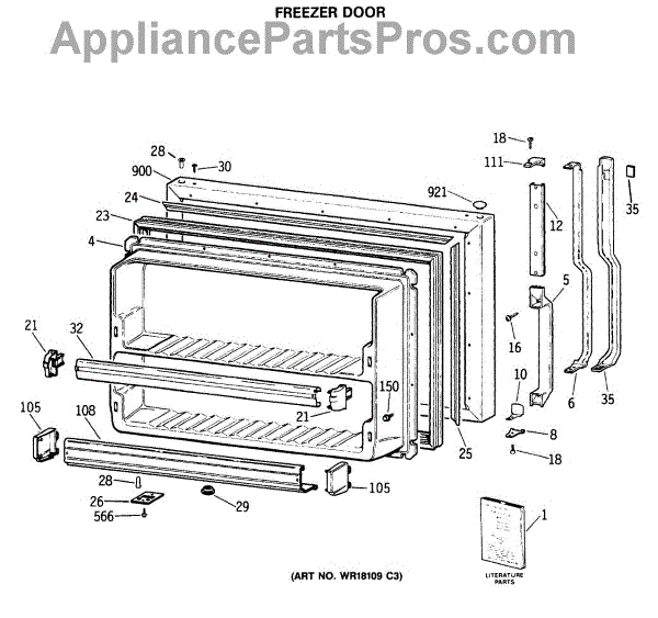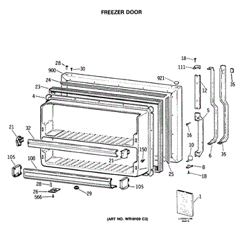 Parts for Ge TBX19JITERAD: 01 - Freezer Door Parts