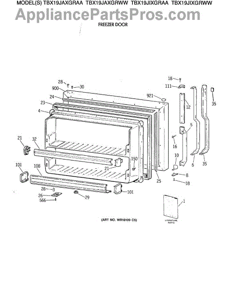 Parts for Ge TBX19JIXGRAA: 01 - Freezer Door Parts