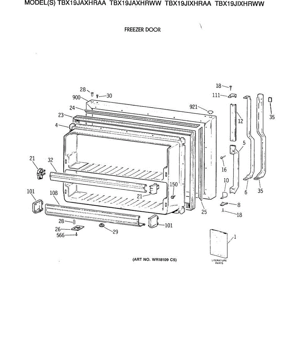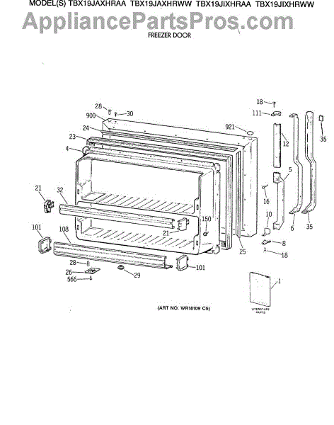 Parts for Ge TBX19JIXHRWW: 01 - Freezer Door Parts