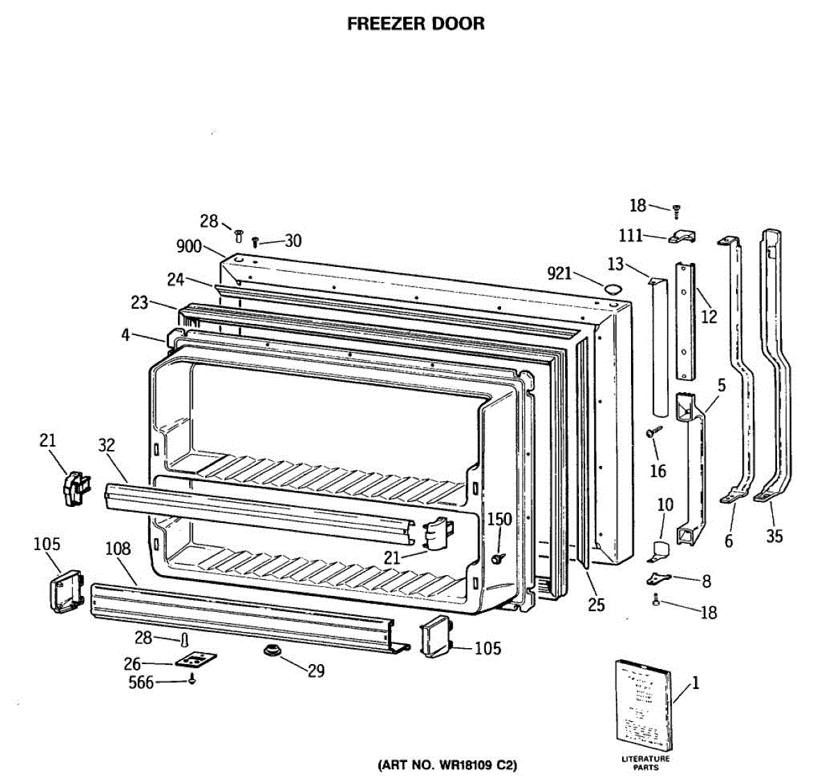 The Gasket for the freezer is an OEM part for GE refrigerators. It creates a seal around the freezer door, preventing warm air from entering and cold air from escaping. This seal is crucial for maintaining the correct internal temperature, ensuring the freezer operates efficiently and food stays properly frozen. The gasket measures 19 1/2 inches wide by 28 inches tall.