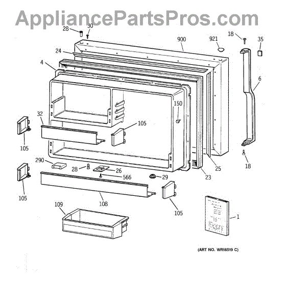 Parts for Ge TBX19VABDRAA: 01 - Freezer Door Parts