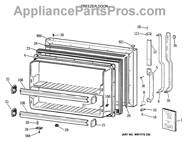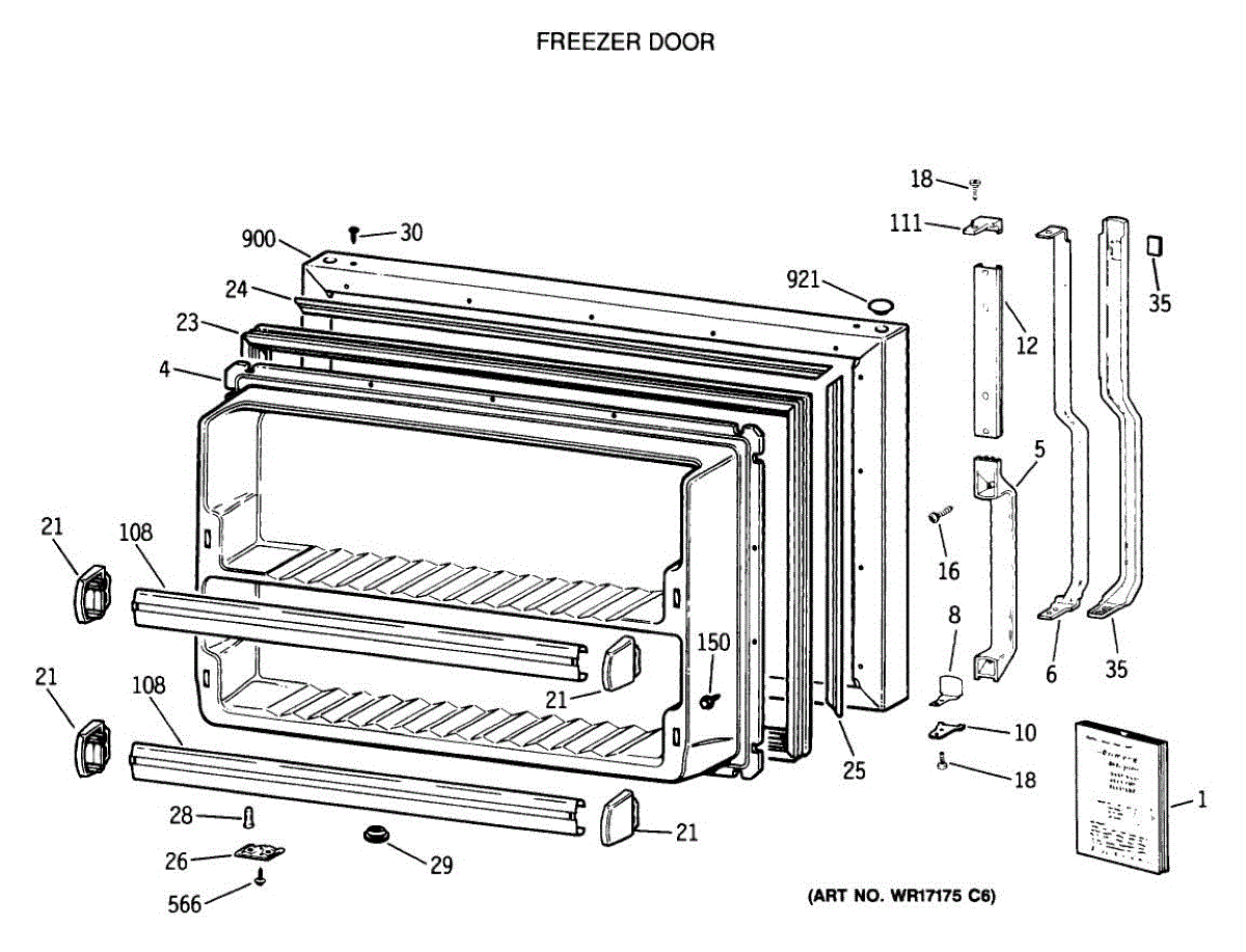 Parts for Ge TBX21DASSRWH: 01 - Freezer Door Parts