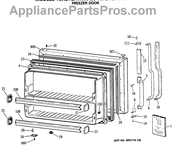 Parts for Ge TBX21GATMRWH: 01 - Freezer Door Parts