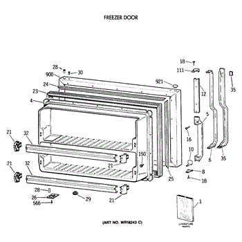 The Freezer Door Gasket is an OEM part for GE refrigerators. This gasket forms a seal around the freezer door, keeping cold air inside and preventing warm air from entering, which helps to maintain the optimal temperature and efficiency of the freezer.