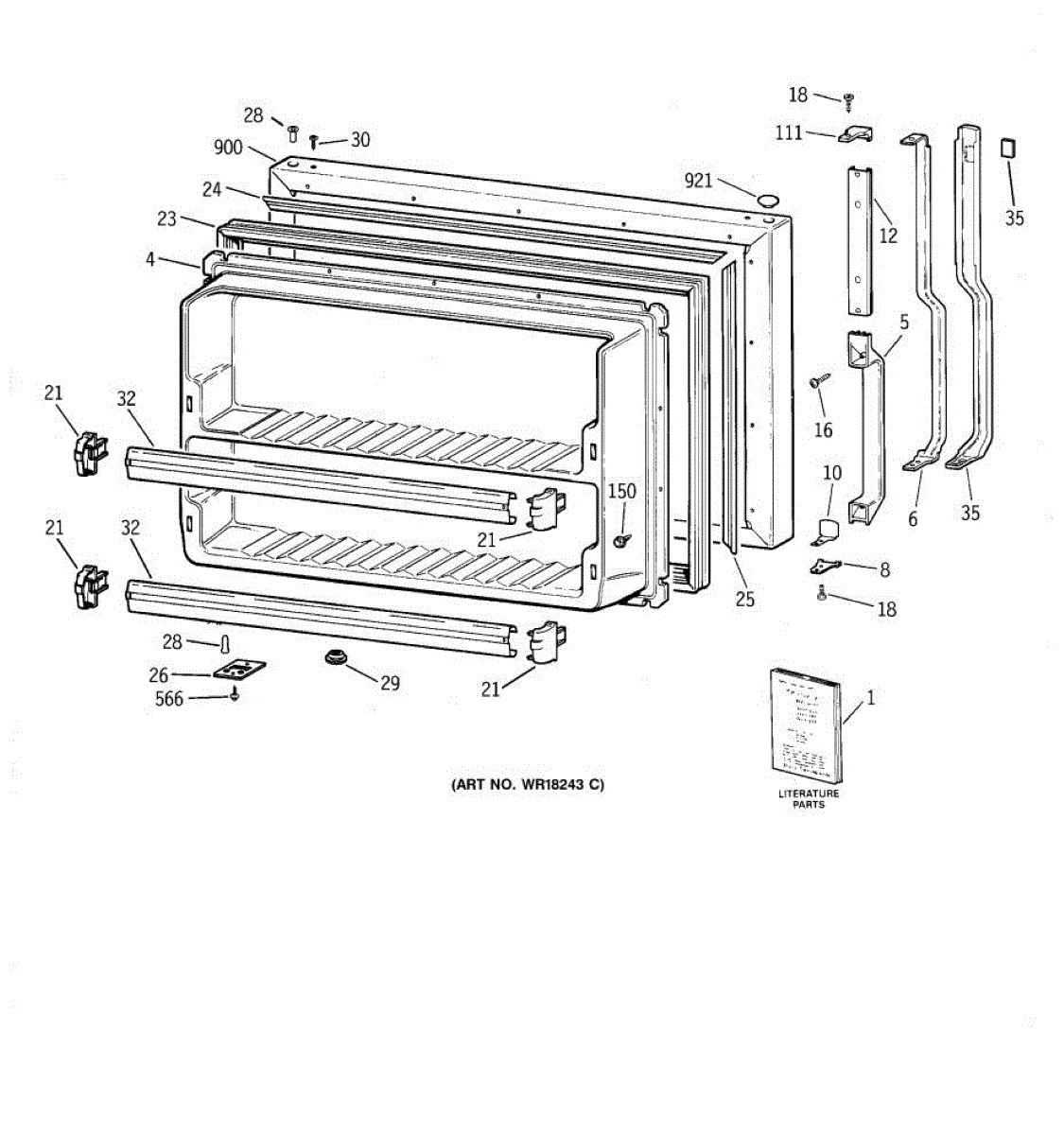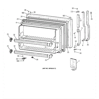 Parts for Ge TBX21JAZBRWW: 01 - Freezer Door Parts