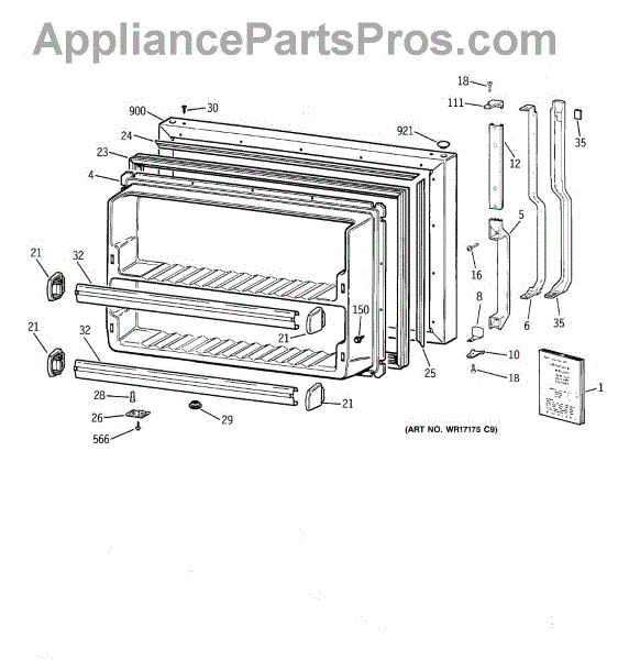 Parts for Ge TBX21MAZBRWW: 01 - Freezer Door Parts