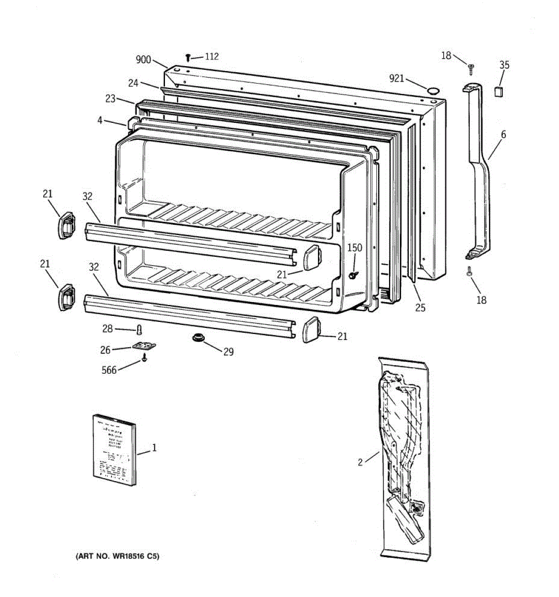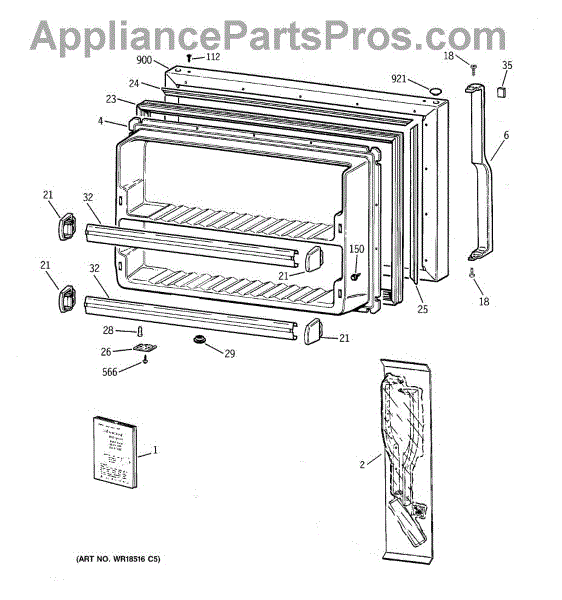 Parts for Ge TBX21NICBRWW: 01 - Freezer Door Parts