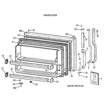 Parts for Ge TBX21NIXBRAA: 01 - Freezer Door Parts