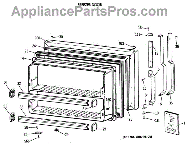 Parts for Ge TBX21NIXDRAA: 01 - Freezer Door Parts