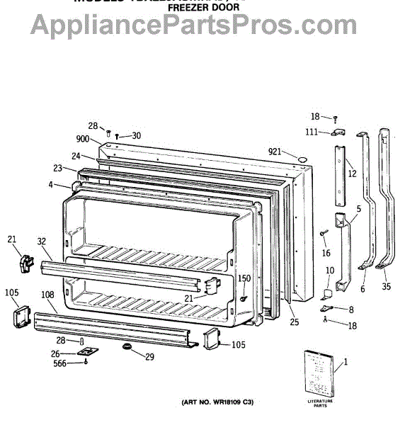 Seals freezer door to keep cold air in and warm air out. Replace if torn, cracked, or not sealing properly. Verify fit with your model number.