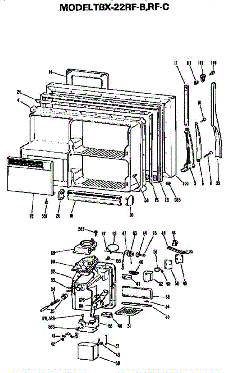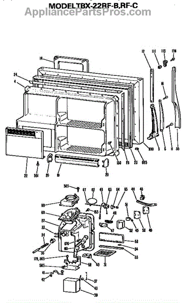 Parts for Ge TBX22RFC: Freezer Door Parts