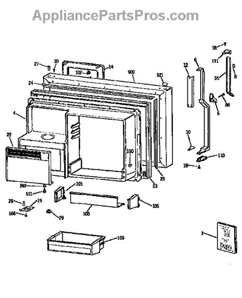Parts for Ge TBX25PCSLLA: Freezer Door Parts