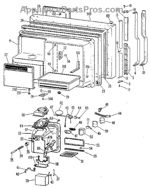 Parts for Ge TBX25RLB: Freezer Door Parts
