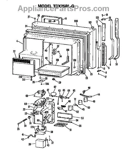 Parts for Ge TBX25RLGL: Freezer Door Parts