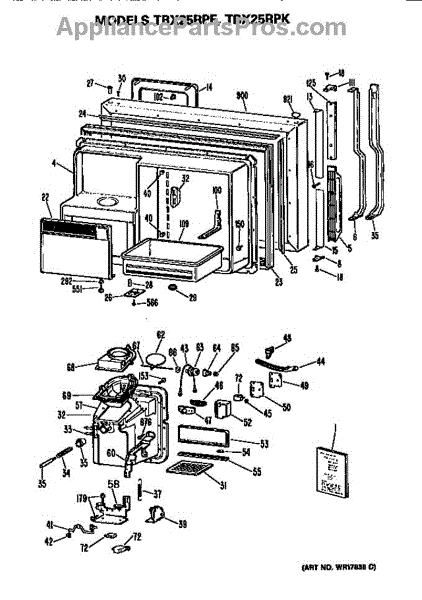 Parts for Ge TBX25RPKRAD: Freezer Door Parts