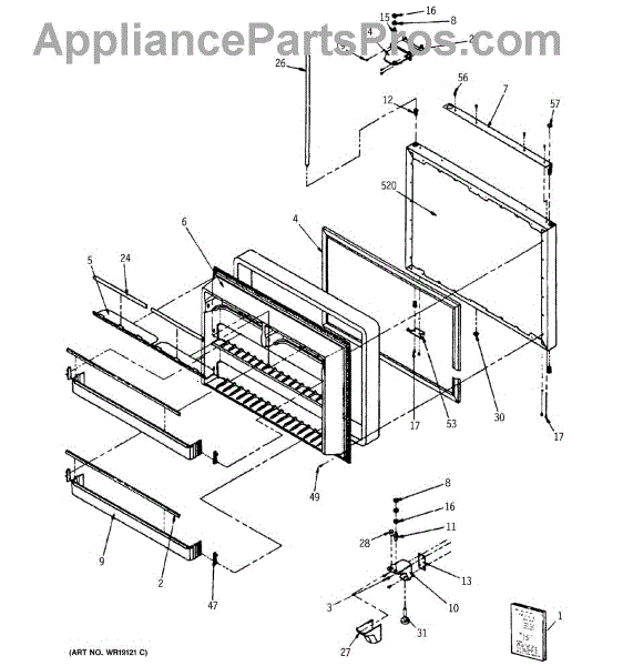 Parts for Ge TCX22ZASBRAD: 01 - Freezer Door Parts