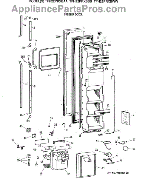 Parts for Ge TFH22PRXBAA: 01 - Freezer Door Parts