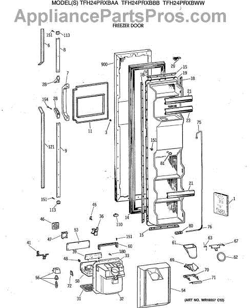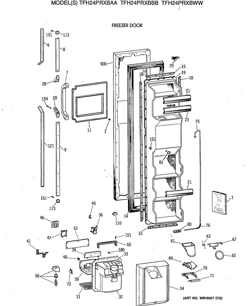 Ice dispenser door assembly seals the ice chute opening on your refrigerator. Replace if cracked, warped, or the rubber gasket is damaged and leaking air.