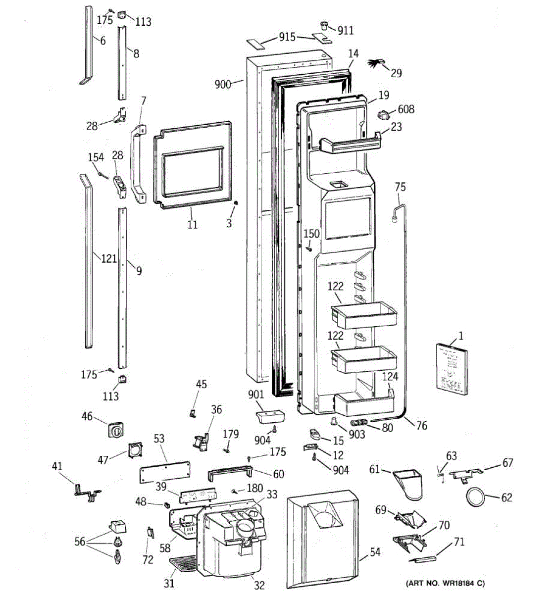 Ice dispenser door assembly seals the ice chute opening on your refrigerator. Replace if cracked, warped, or the rubber gasket is damaged and leaking air.