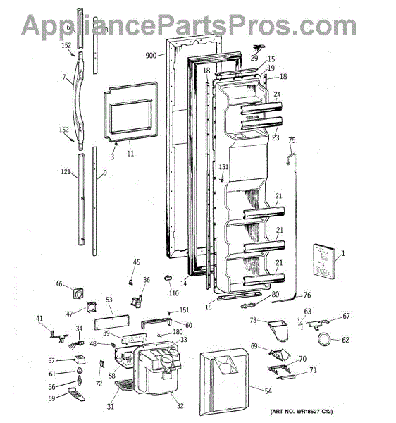 The Ice Door Assembly is an OEM part for GE refrigerators. It is integral to the ice dispenser system, controlling access to the ice chute. This component ensures the efficient delivery of ice cubes or crushed ice when activated and seals off the chute when not in use to maintain the freezer's temperature and prevent frost buildup.