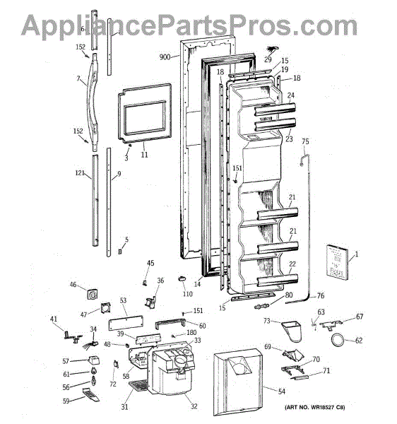 The Ice Door Assembly is an OEM part for GE refrigerators. It is integral to the ice dispenser system, controlling access to the ice chute. This component ensures the efficient delivery of ice cubes or crushed ice when activated and seals off the chute when not in use to maintain the freezer's temperature and prevent frost buildup.