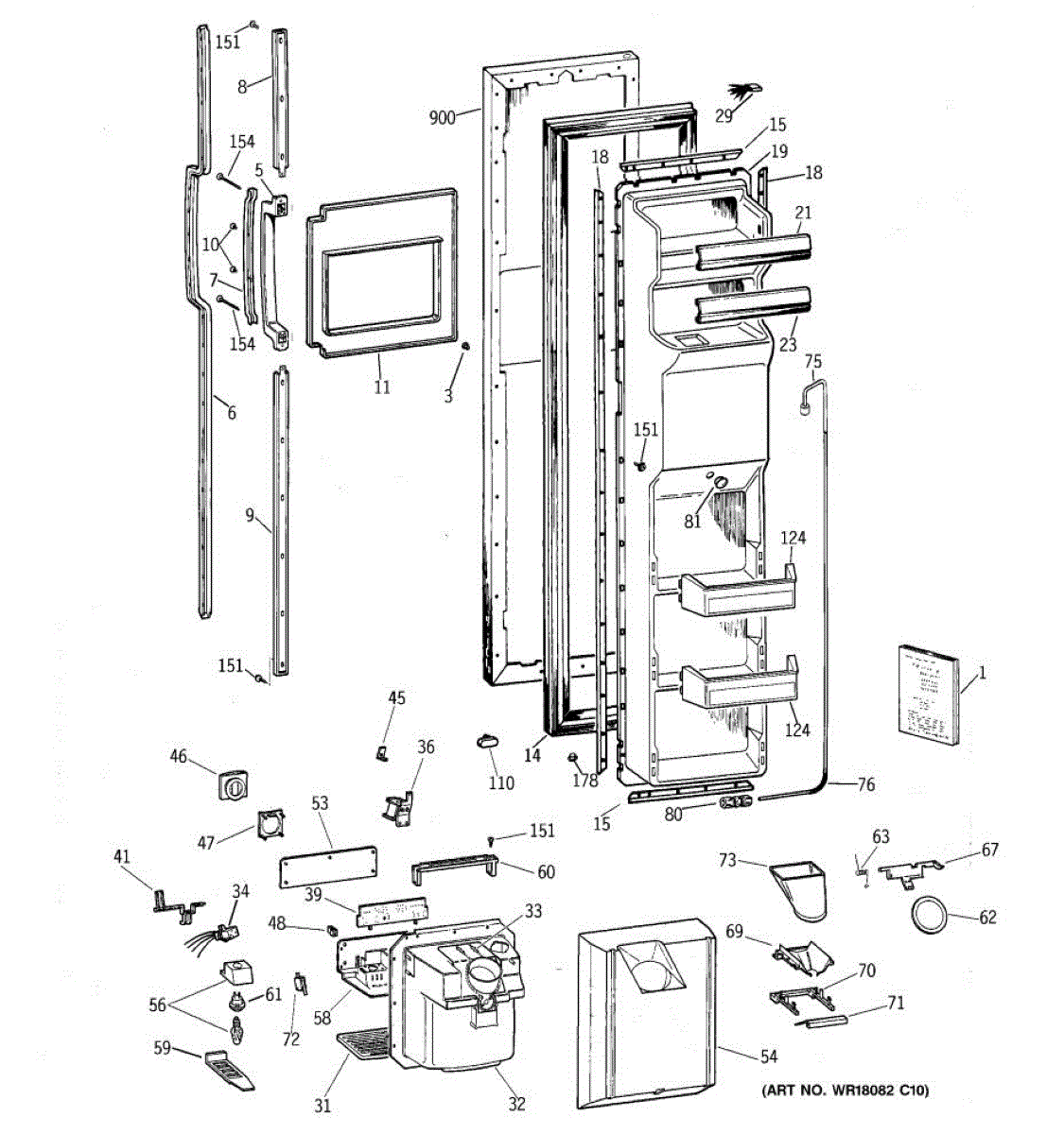 The Ice Door Assembly is an OEM part for GE refrigerators. It is integral to the ice dispenser system, controlling access to the ice chute. This component ensures the efficient delivery of ice cubes or crushed ice when activated and seals off the chute when not in use to maintain the freezer's temperature and prevent frost buildup.