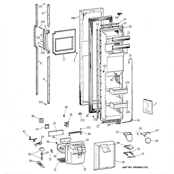 The Ice Door Assembly is an OEM part for GE refrigerators. It is integral to the ice dispenser system, controlling access to the ice chute. This component ensures the efficient delivery of ice cubes or crushed ice when activated and seals off the chute when not in use to maintain the freezer's temperature and prevent frost buildup.
