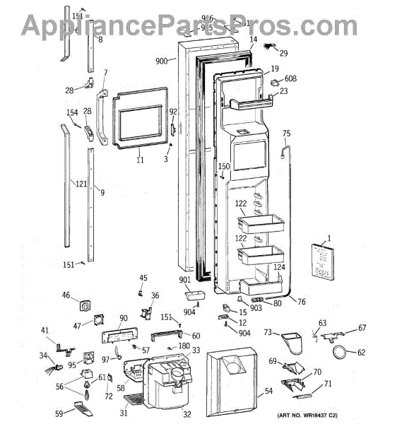 Parts for Ge TFK28PFZAWW: 01 - Freezer Door Parts