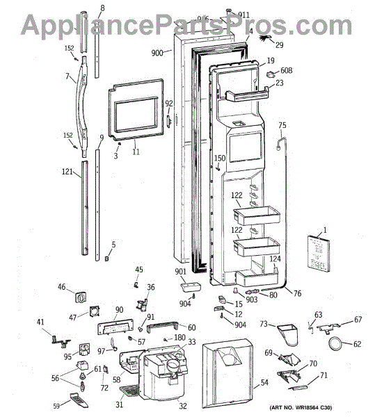 Parts for Ge TFK30PFDBWW: 01 - Freezer Door Parts