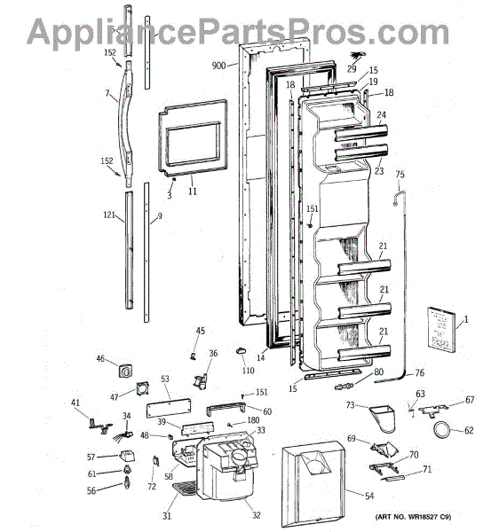 Parts for Ge TFT22PRBCAA: 01 - Freezer Door Parts