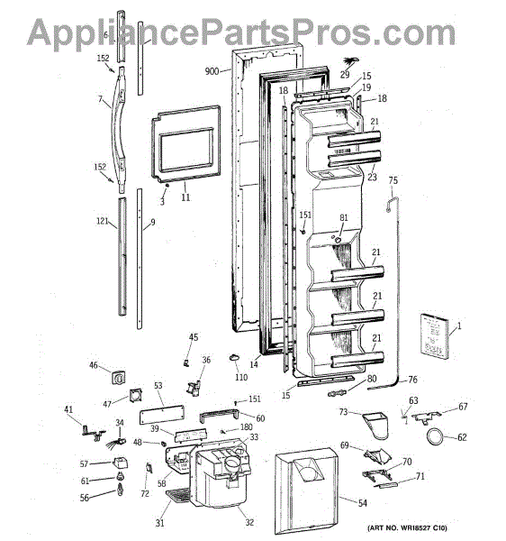 Ice dispenser door assembly seals the ice chute opening on your refrigerator. Replace if cracked, warped, or the rubber gasket is damaged and leaking air.