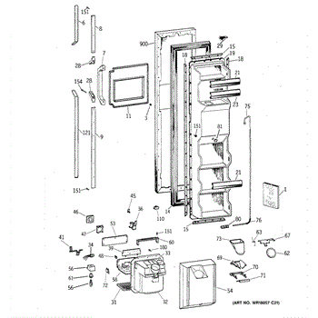 The Ice Door Assembly is an OEM part for GE refrigerators. It is integral to the ice dispenser system, controlling access to the ice chute. This component ensures the efficient delivery of ice cubes or crushed ice when activated and seals off the chute when not in use to maintain the freezer's temperature and prevent frost buildup.