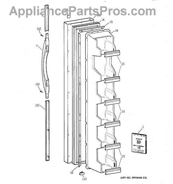 The Door Handle is an OEM part for GE refrigerators. This part provides a secure and comfortable grip for opening and closing the refrigerator door.