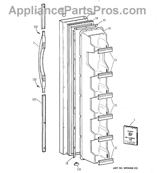 Parts for Ge TFX20JABEWW: 01 - Freezer Door Parts