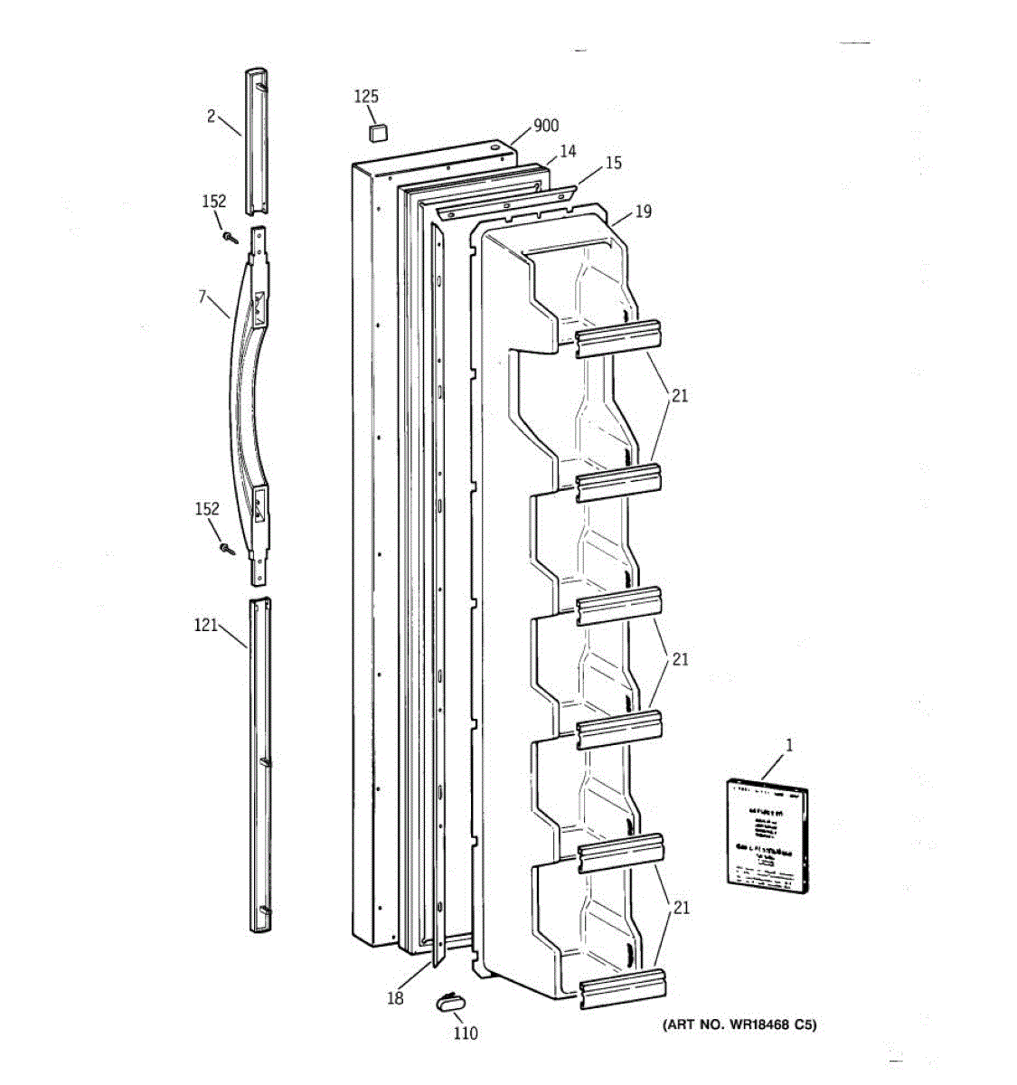 The Door Handle is an OEM part for GE refrigerators. This part provides a secure and comfortable grip for opening and closing the refrigerator door.