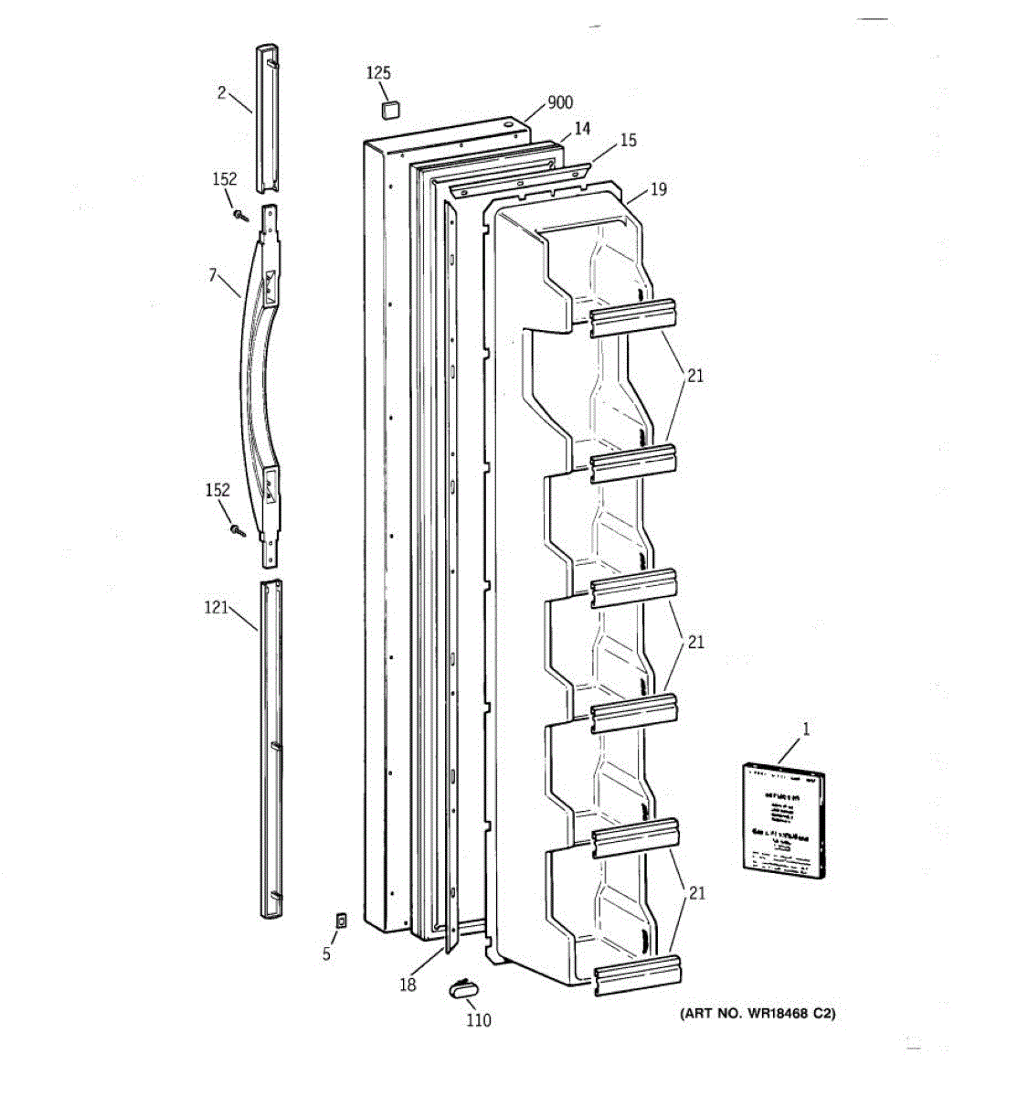 The Door Handle is an OEM part for GE refrigerators. This part provides a secure and comfortable grip for opening and closing the refrigerator door.