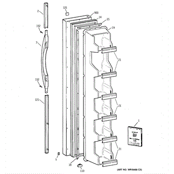 The Door Handle is an OEM part for GE refrigerators. This part provides a secure and comfortable grip for opening and closing the refrigerator door.