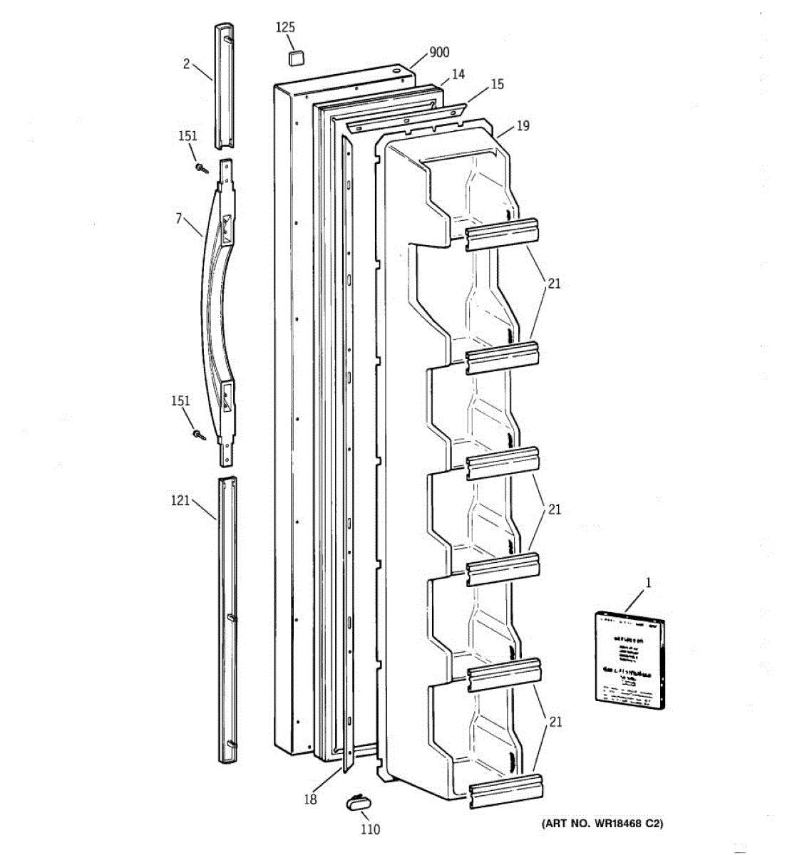 The Door Handle is an OEM part for GE refrigerators. This part provides a secure and comfortable grip for opening and closing the refrigerator door.