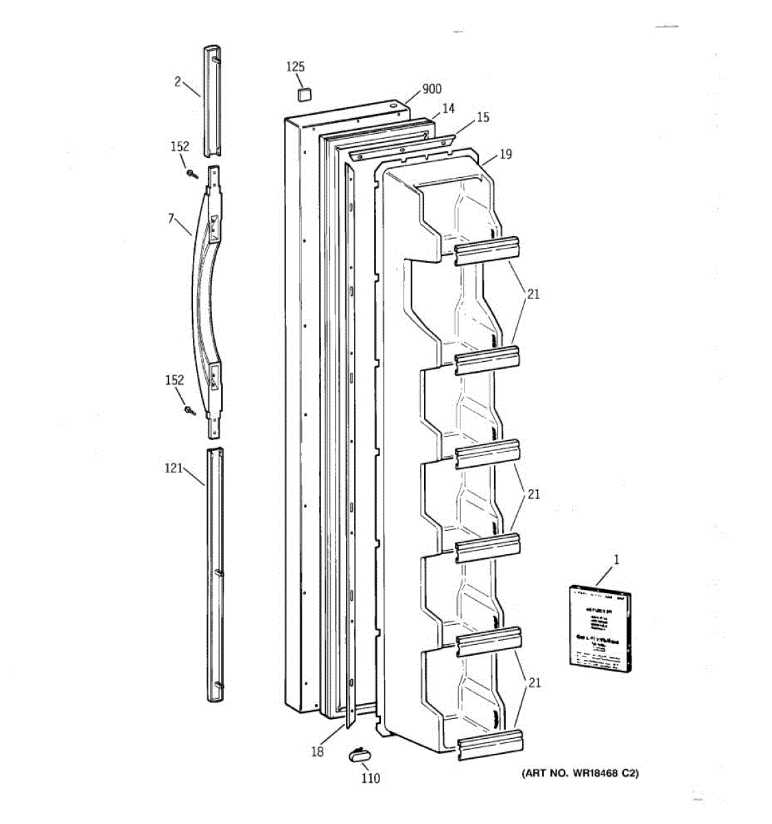 The Door Handle is an OEM part for GE refrigerators. This part provides a secure and comfortable grip for opening and closing the refrigerator door.