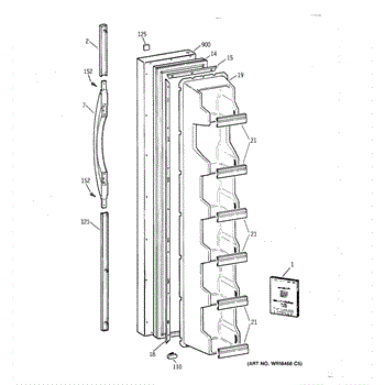 The Door Handle is an OEM part for GE refrigerators. This part provides a secure and comfortable grip for opening and closing the refrigerator door.