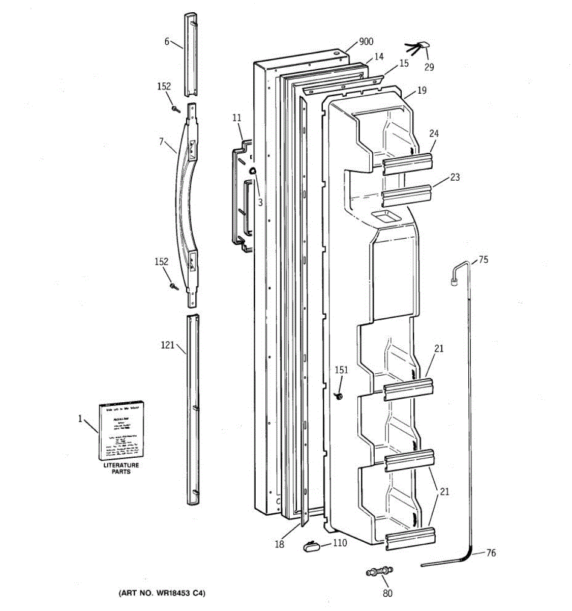 The Door Handle is an OEM part for GE refrigerators. This part provides a secure and comfortable grip for opening and closing the refrigerator door.